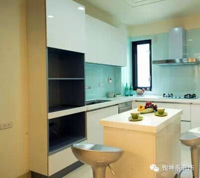 柜子层层叠叠不如将它们全都隐藏进墙壁里,嵌入式的隔间设计就是对厨房空间更加充分的利用,橱柜的拉篮设计也能为室内增加很多的隐藏空间,同时也避免了地面空间的占用。